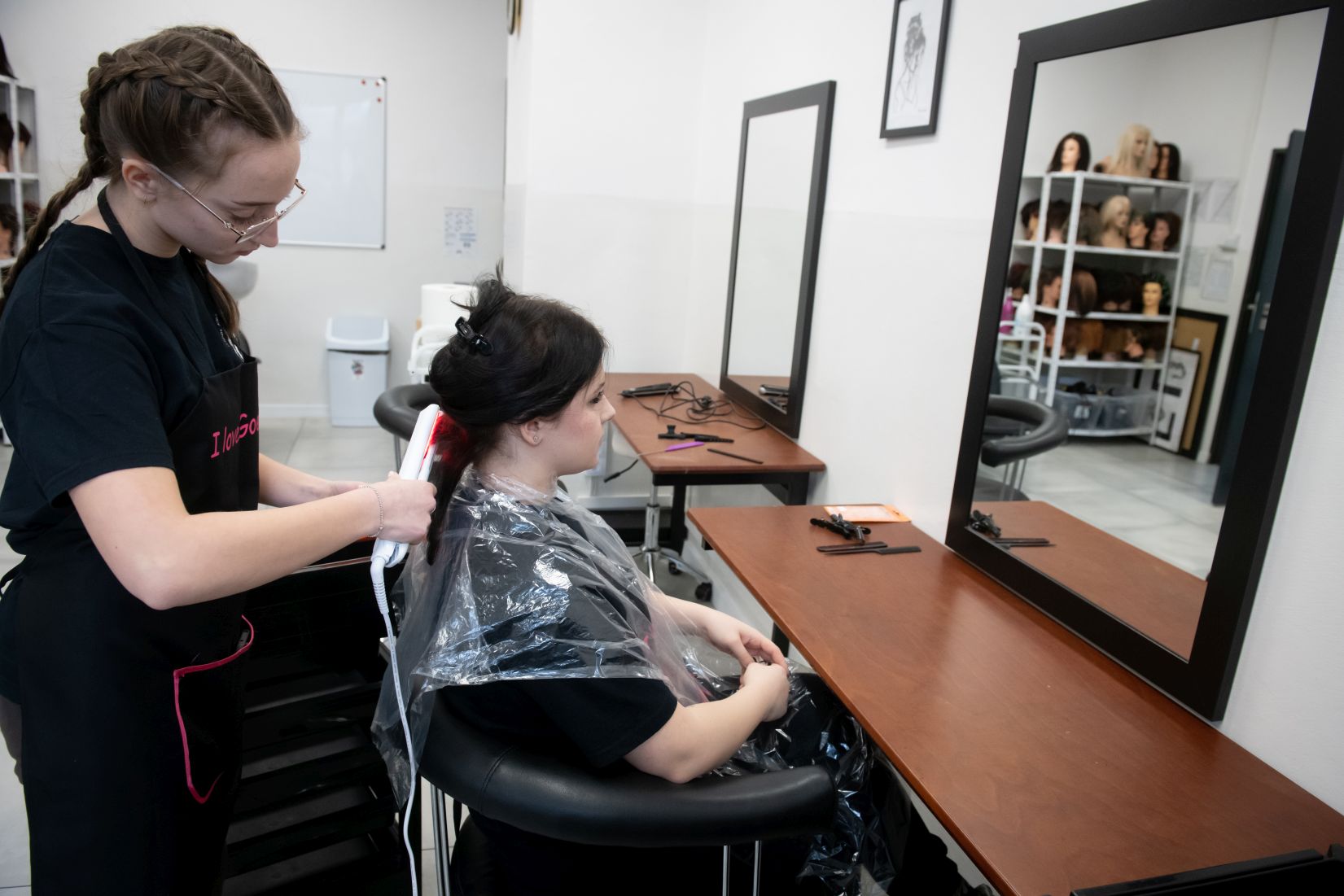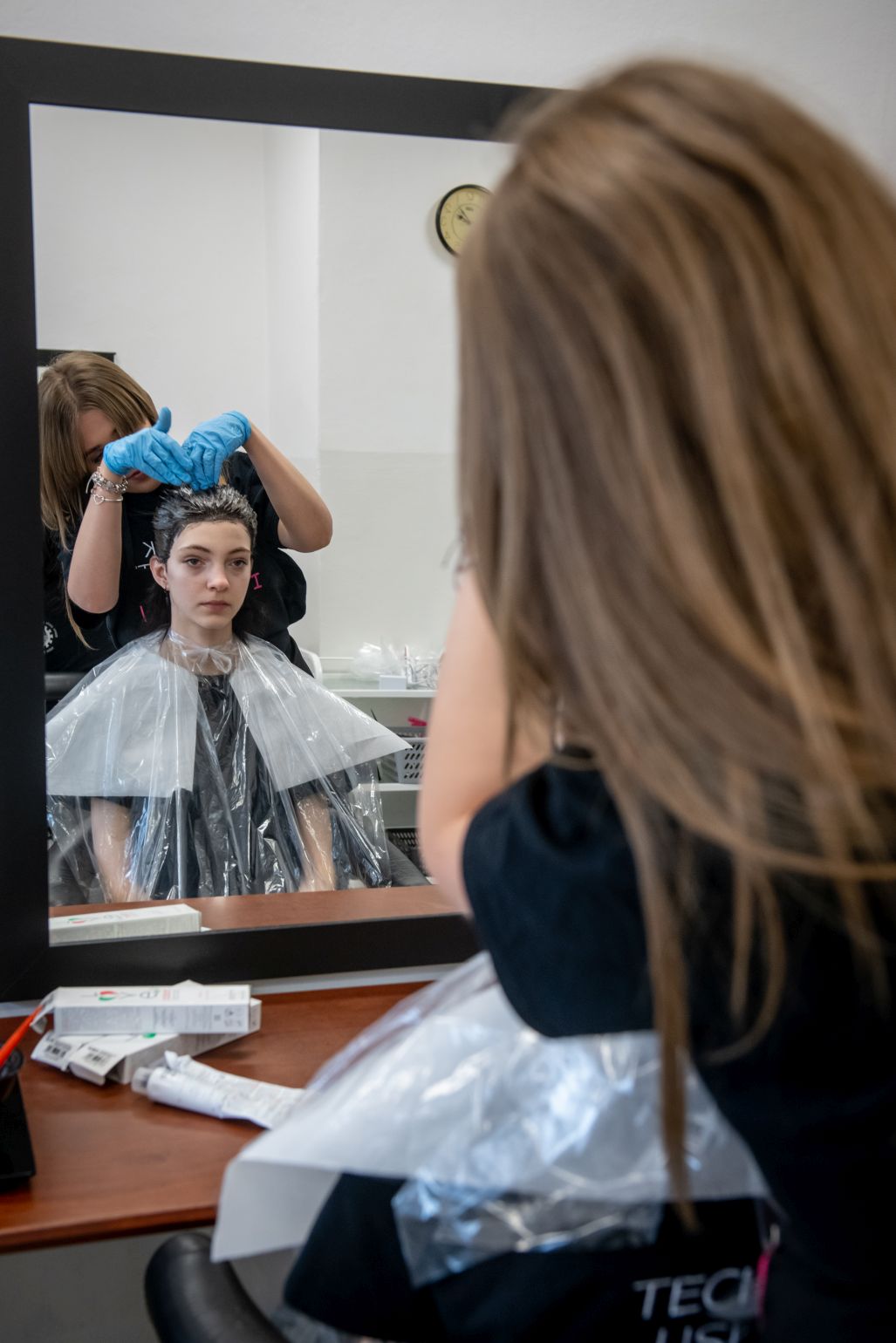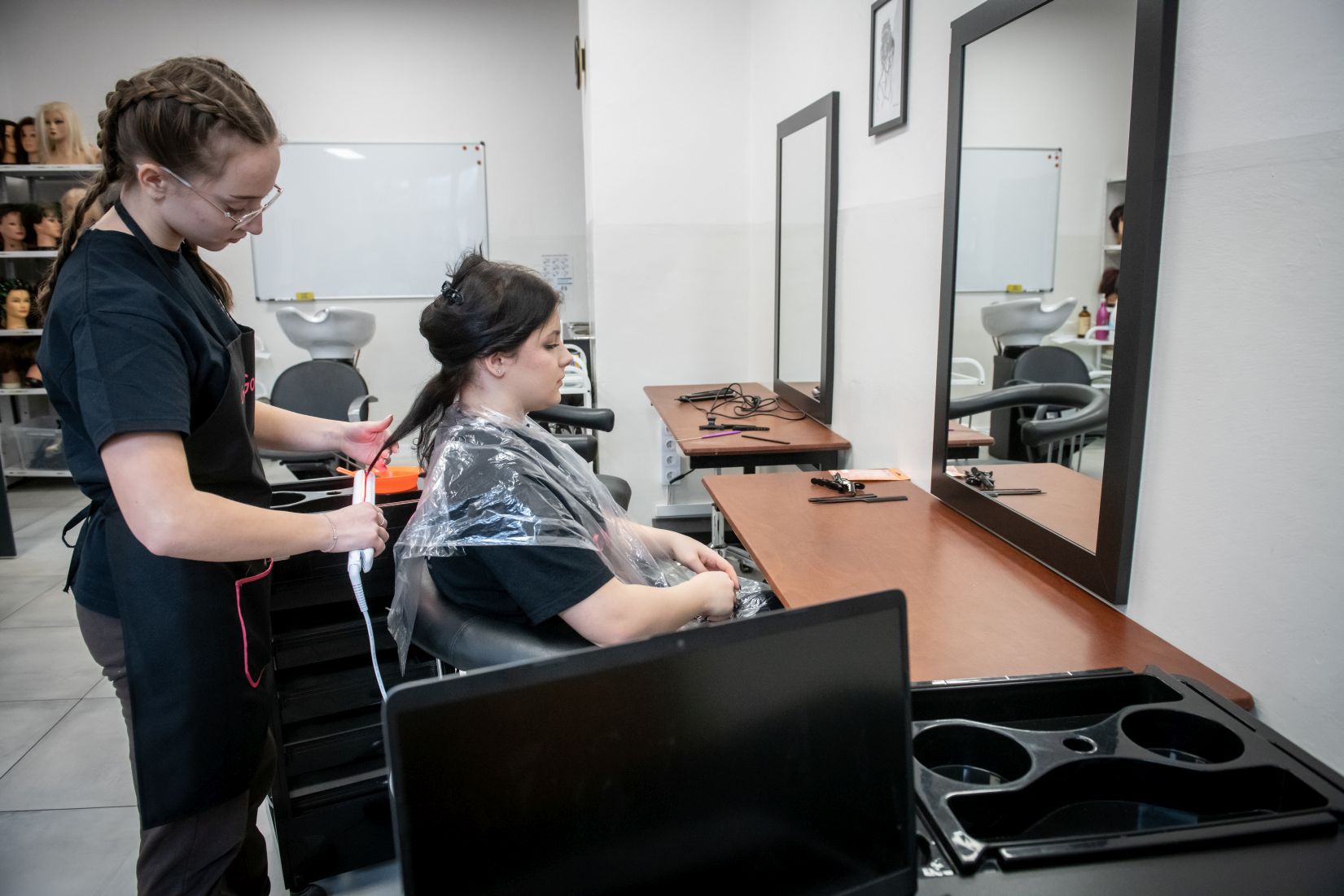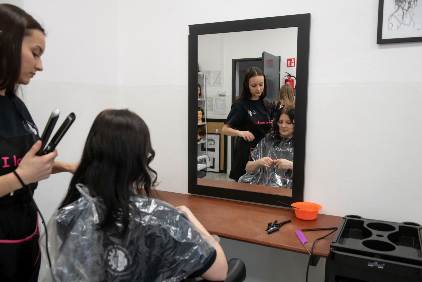 W budynku ZS im. W Goetla w Makowie Podhalańskim uczennice technikum usług fryzjerskich pod okien nauczycieli – mistrzów fryzjerstwa pełnią usługi fryzjerskie damskie i męskie w pełnym zakresie, m. in.